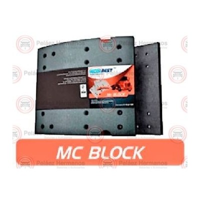 Información Técnica 1: TIPO MC BLOCK. Es una formulación amigable con el medio ambiente, fabricada con tecnología cerámica y fibras aramidas KEVLAR. Alta duración y confort en la frenada. Aplica para vehículos pesados de carga. SIN ASBESTO
