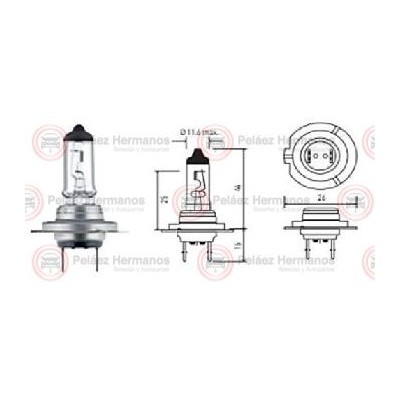 Información Técnica 1: Tipo H7, 24 Voltios, 70 Vatios, Base PX26d, Flujo Luminoso 1750 Lúmenes